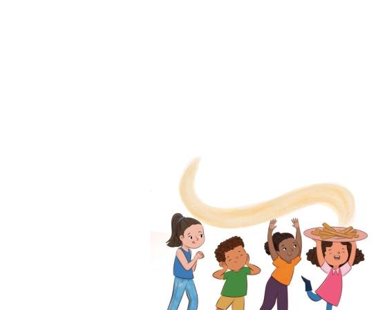 Emi has an idea! Maybe she can make churros after all, with a little help. From Señora Luisa, she can borrow flour. Tomas in 312 has sugar. Marisol in 512 has a piping tip. Soon Emi’s apartment is filled with the scent of fresh churros, new foods, and new friends!