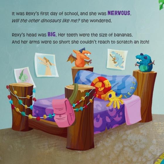 Life isn't always easy—even for a T. rex! In this sweet, funny picture book, a T. rex who is self-conscious about her big teeth and small arms learns she is perfect exactly as she is! Perfect for dinosaur lovers—with a bonus message about self-acceptance!Rexy is nervous about starting school. Her head is BIG. Her arms are small. And her teeth are the size of bananas! Rexy