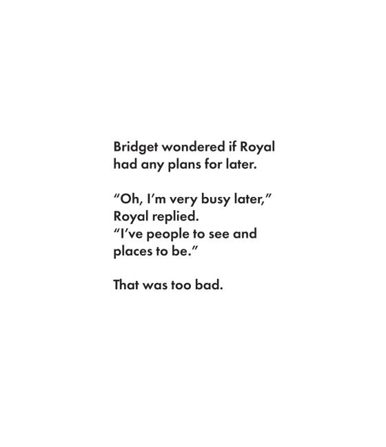 A poignant—and laugh-out-loud funny—story about our busy lives and how we can fix our mistakes to show our friends how much we care by world-renowned artist and picture book creator Oliver Jeffers.It’s Bridget’s birthday, and she thinks it would be fun to spend the day with friends. But Royal has places to go, Rodney has to see a man about a dog, Regis has to wash his hair, and Pearl has a list of items she needs to cross off as quickly as she can. Bridget’s friends are all too busy to hang out!