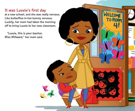 But immediately things do not go well. First, a kid in class makes fun of her name. How dare he! But Luvvie’s instant response gets her scolded. Then she forgets her lunch. And worst of all, her teacher sees a private note Luvvie had written to herself where she talked about how much she doesn’t like her new school. What a day! But this little troublemaker figures out how to turn things around.