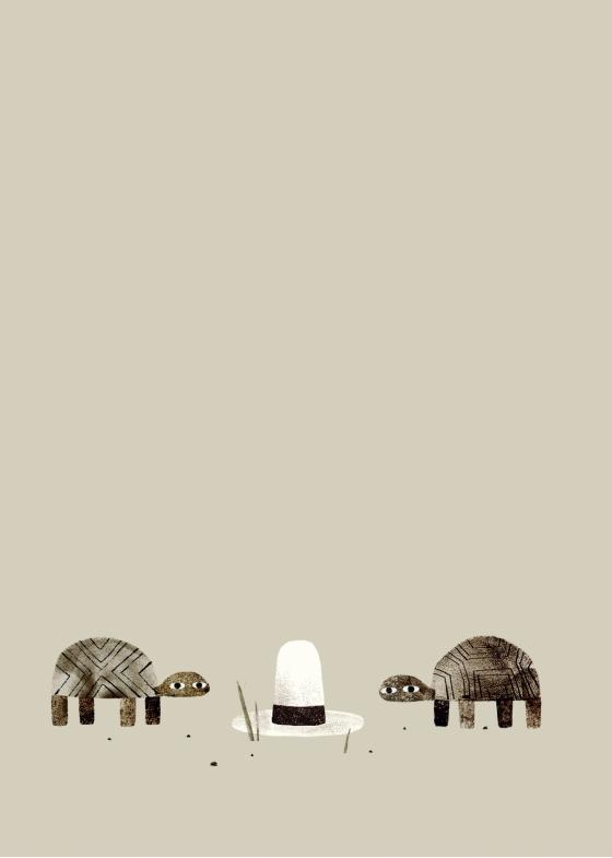 spare, visually witty story ends in dreamland, where both tortoises are floating side by side in a star-sprinkled black sky... both wearing tall white hats. Will this lovely vision survive the light of day? Ask Klassen.