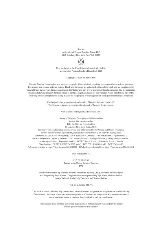 For fans of Disney’s GO FIGURE, a laugh-out-loud, heartfelt dual POV sibling-rivalry story by acclaimed author Jessica KimTwelve-year-old fraternal twins Phoebe and Dexter Bae are polar opposites in every way except for their love of the ice. Phoebe is hyperfocused on pairs figure skating, and Dex loves his hockey team. But when Phoebe’s partner injures his knee just two months before competitions and Dex gets cut from his team in favor of a new hotshot goalie from Canada, they’re both left spinning.