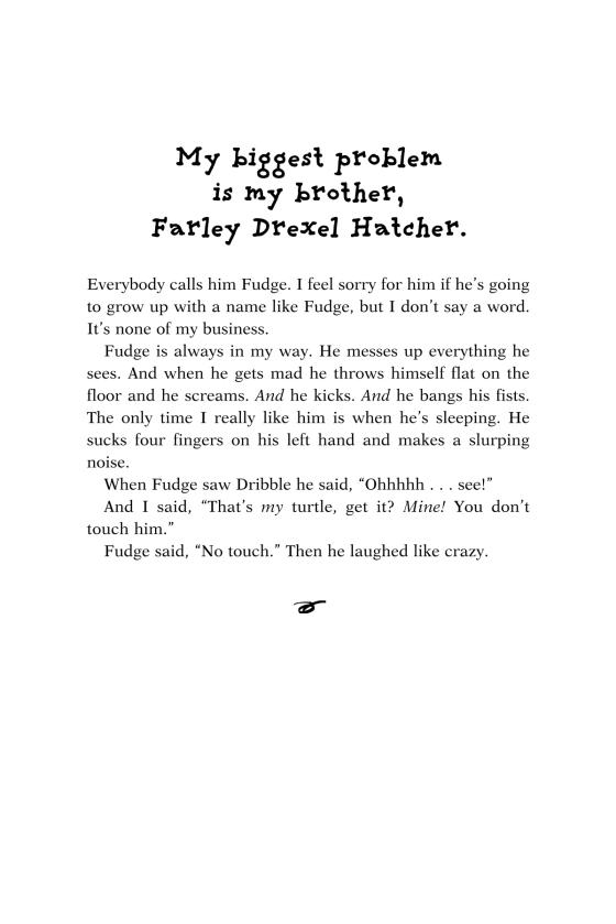 The #1 New York Times bestselling author's first book in her classic Fudge series."As a kid, Judy Blume was my favorite author, and Tales of a Fourth Grade Nothing was my favorite book."—Jeff Kinney, author of the bestselling Wimpy Kid series“Each [Fudge book] is packed with wacky earthy disasters that are her trademark and that children love to read about . . . Judy Blume has a knack for knowing what children think about and an honest, highly amusing way of writing about it.”—The New York TimesTwo is a crowd when Peter and his little brother, Fudge, are in the same room. Grown-ups think Fudge is absolutely adorable, but Peter and his pet turtle, Dribble, know the truth. From throwing temper tantrums to smearing mashed potatoes on the wall, Fudge causes mischief wherever he goes!
