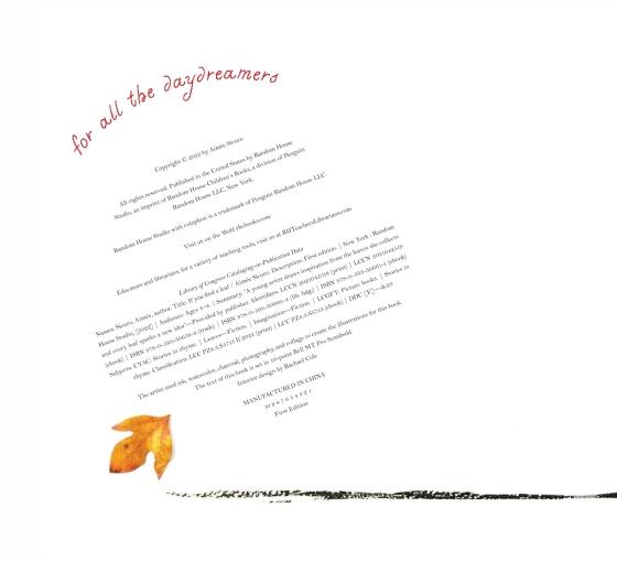 In this story a young artist draws inspiration from the leaves she collects and every leaf sparks a new idea. She imagines turning a Japanese Zelkova leaf into a boat to sail far away, a Honey Locust leaf into a swing to sway in the gentle breeze, and an American Basswood leaf into a hot air balloon to float high above the trees.