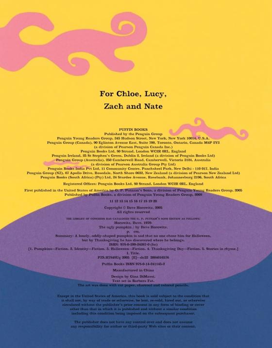 Perfect for the changing seasons, this wacky twist on The Ugly Duckling is a great read for Halloween and Thanksgiving.The Ugly Pumpkin has waited all through October for someone to take him home, but no one wants him. He doesn't look like other pumpkins. So the lonely Ugly Pumpkin leaves the patch in search of a place where he'll fit in. By the time Thanksgiving arrives, he discovers the truth about who he is--but it's not what he expected!