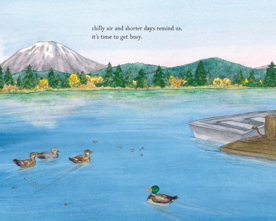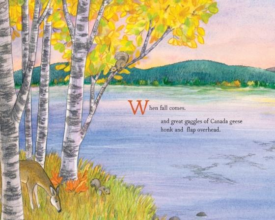 In autumn, as the air grows crisper and the days grow shorter, the family forages for mushrooms in the woods as chipmunks stash seeds in underground burrows, and red squirrels gather pinecones. As badgers dig new dens and bears look for the perfect spot to sleep away the winter, the family prepares their home for winter.