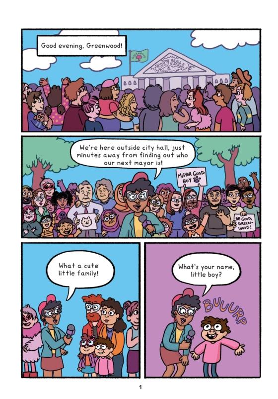 "Kid-friendly... uses a comedic style employed with success by Dav Pilkey and Nickelodeon cartoons... gamely mixes cute and mildly disgusting while representing Greenwood’s intersectional diversity" --