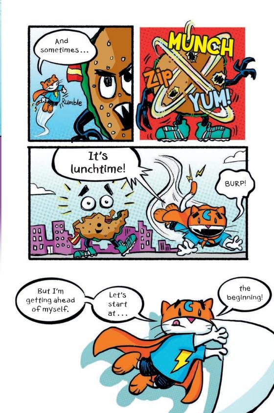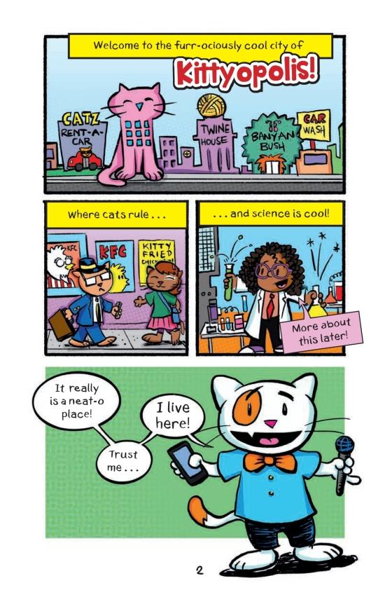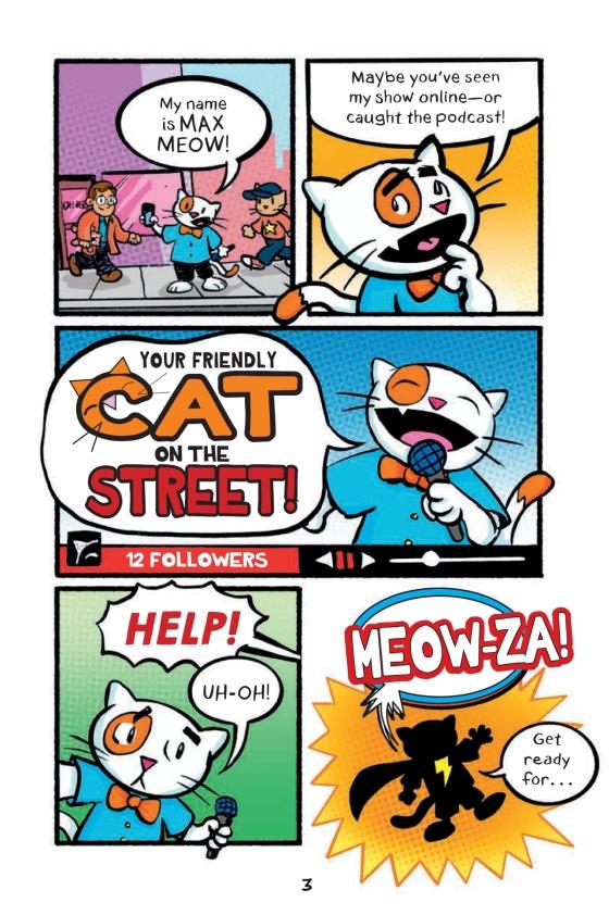 Meet a secret superhero with CAT-ITUDE--Max Meow, Cat Crusader--in this purr-fectly awesome, hiss-sterically funny graphic novel series just right for fans of Dog Man and InvestiGators!Max is just a regular cat in Kittyopolis, trying to make it big as a podcaster UNTIL he accidentally takes a bite of an RADIOACTIVE SPACE MEATBALL at his best friend Mindy's SECRET LAB. Then before you can say MEOWZA, Max becomes...The CAT CRUSADER! Being a super hero is fun--but not if you get so cocky, you forget your best friend! Will Max and Mindy make up? And together, can they save Kittyopolis from the evil Agent M and BIG BOSS?! Find out in this furr-ociously funny series!
