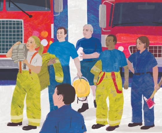 Bank Street Best Book of the Year★ "Ashman’s text is serviceably crisp... [The] repetition, much like the clanging of the alarm bell, does a great job alerting readers to an emergency. Carpenter’s illustrations are digitally enhanced acrylic paintings, using a predominantly primary color palette: red fire truck, yellow turnout gear, navy blue shirts. A must-have for all community helper collections." —