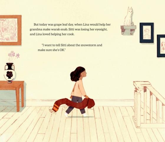 A snowy day, a trip to Grandma's, time spent cooking with one another, and space to pause and discover the world around you come together in this perfect book for reading and sharing on a cozy winter day.One winter morning, Lina wakes up to silence. It's the sound of snow -- the kind that looks soft and glows bright in the winter sun. But as she walks to her grandmother's house to help make the family recipe for warak enab, she continues to listen.