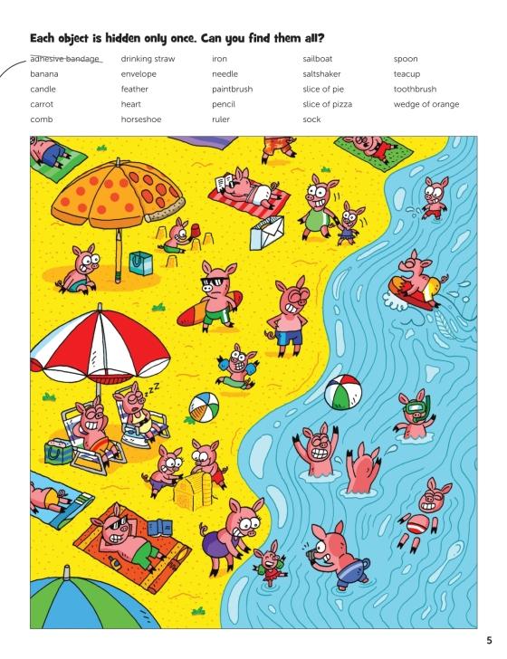 Kids (and grown-ups, too) will need to keep their eyes peeled to find more than 1,500 objects in 80+ hilarious scenes like sloths playing ping pong, dogs enjoying a fiesta, and a fishy carnival.