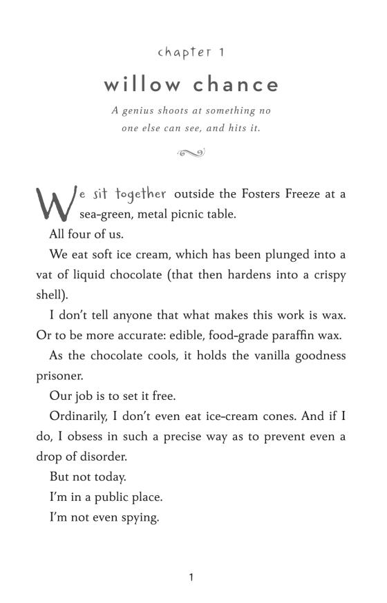 Willow Chance is a twelve-year-old genius, obsessed with nature and diagnosing medical conditions, who finds it comforting to count by 7s. It has never been easy for her to connect with anyone other than her adoptive parents, but that hasn’t kept her from leading a quietly happy life . . . until now.