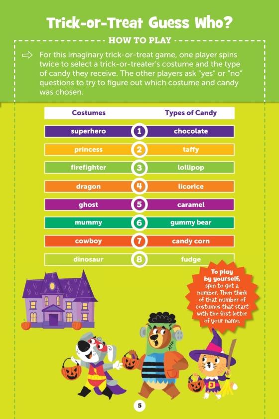 Take this spooky activity book for a spin! With a built-in spinner and over 20 Halloween-themed games, this travel-sized book has everything kids 6-9 need for hours of entertainment.Surrounded by adorable Halloween illustrations, the attached spinner cleverly folds out to work with every game. The games in this 32-page book include activities for one and for multiple players, including Hidden Pictures puzzles, fill-in story challenges, silly brainteaser games and more. Each activity is expertly created by the childhood experts at Highlights to help kids develop their concentration, attention to detail and other important school skills. Plus, playing games is a great way for children to build social emotional skills.