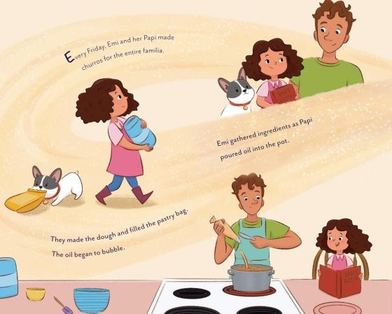 A girl and her dad move to a new town. And she’s determined to keep their traditions, no matter how busy Daddy is! A fun story about family, food, and good neighbors!Every Friday, Emi and her Papi made churros for the entire familia. Now in their new apartment in the big city, Papi is always working, and there are no churros, and no familia, on Fridays. Until, Emi smells something sweet and delicious coming from her neighbor Señora Luisa’s apartment.