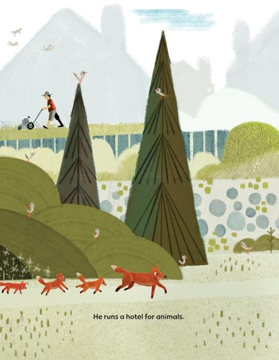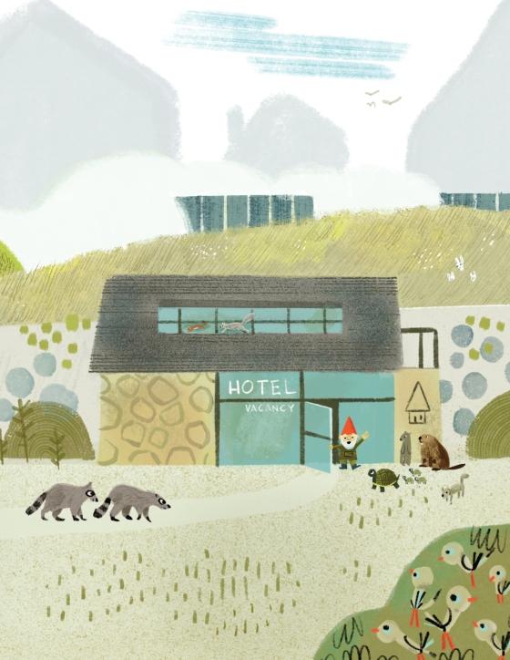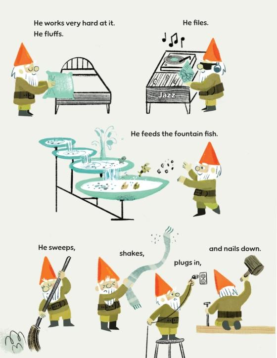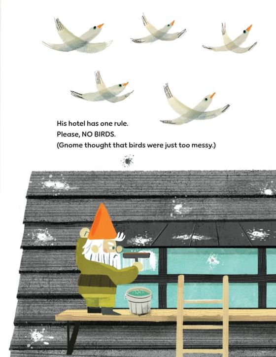He isn't your garden-variety garden gnome. He runs a small hotel for animals, and he works very hard at it. He spends his days fluffing, filing, and feeding the hotel's fountain fish. And his hard work was finally paying off! His hotel had become a place for small animals to stay for a night or two, and all the guests agreed that there was no place like Gnome's.