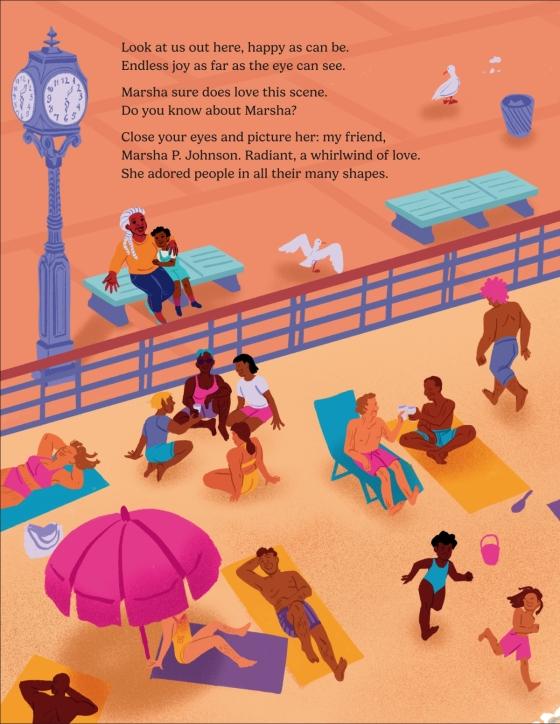 This vibrant and joyful picture book celebrates the legacy of Marsha P. Johnson, a Black trans woman and activist who played an instrumental role during the Stonewall Riots that led to PRIDE month, written by award-winning filmmaker and artist Tourmaline.You wouldn’t even believe the things Saint Marsha used to get up to—she had more of a zest for life than anyone I’ve ever known, and the biggest heart, too.It’s a hot summer day and New York City is buzzing like a hive of eager honeybees. From Riis Beach to the Flower District, into the West Village and over to the Brooklyn Museum, folks young and old embrace the resolute and love-filled spirit of icon activist Marsha P. Johnson in all that they do.
