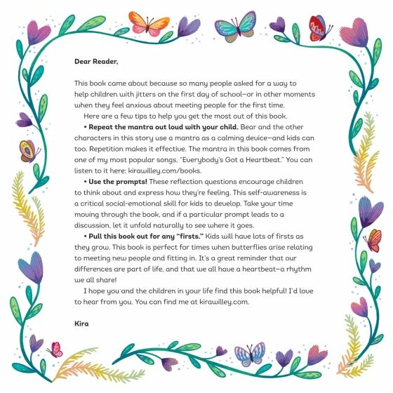 A companion picture book to Breathe Like a Bear that helps kids feel calm and ready to meet new classmates!Bear can't wait to go to her first day of school. But she and a few of her friends are also feeling a little anxious. Luckily, Owl has the perfect words for them all to say to calm the jitters and help them recognize the similarities we share under the trappings of our uniqueness.