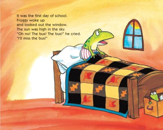 Froggy's mother knows that everyone's nervous on the first day of school. "Not me!" says Froggy, and together they leapfrog to the bus stop -- flop flop flop. Froggy's exuberant antics will delight his many fans and reassure them that school can be fun."This is a great read-aloud with sounds and words that encourage active participation....A charming story to calm those pre-school jitters." --