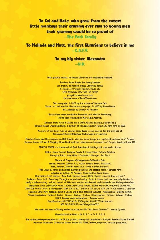 Laugh out loud with the #1 New York Times bestselling Junie B. Jones—now starring in “a dynamic new graphic novel series that stays true to the curious, energetic Junie of years past” (School Library Journal, starred review).“Hilarious. Barbara Park makes reading fun.”—Dav Pilkey, creator of Dog Man Junie B. is NOT happy about a new baby in the family—until her grandma tells her he’s the cutest little monkey ever. A monkey brother? Now that’s exciting!Junie B. Jones is going to have a new baby at her house. Only that is not a very good surprise. Because babies smell like P.U. (Junie B. smelled one once). But good news! Grandma Miller tells Junie B. the new baby is a little monkey! Now Junie B.’s two bestest friends are giving her everything they own just to see him. And guess what else? Maybe she can bring him to school on Pet Day!