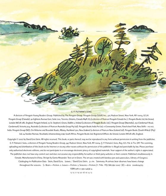 It's a young bear's first autumn, and the falling leaves surprise him. He tries to put them back on the trees, but it doesn't work. Eventually, he gets sleepy and burrows into the fallen leaves for a long nap. When he wakes up, it's spring, and there are suddenly brand-new leaves all around, welcoming him.