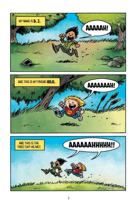 Take off on an action packed adventure with HILO Book 1! Dog Man meets Big Nate in this hilarious New York Times bestselling graphic novel series that kids love! BOOM! CLANG! CRASH! D.J. and Gina are totally ordinary kids. But Hilo isn't! Hilo just fell out of the sky and doesn’t know where he came from, or what he’s doing on Earth. (Or why going to school in only your underwear is a BAD idea!) . . . But UH-OH, what if Hilo wasn’t the only thing to fall to our planet? Can the trio unlock the secrets of Hilo's past? Can Hilo survive a day at school? Find out in HILO-a laugh-out-loud, epic story of friendship! Adventure! (And the occasionaly mutant space robot).