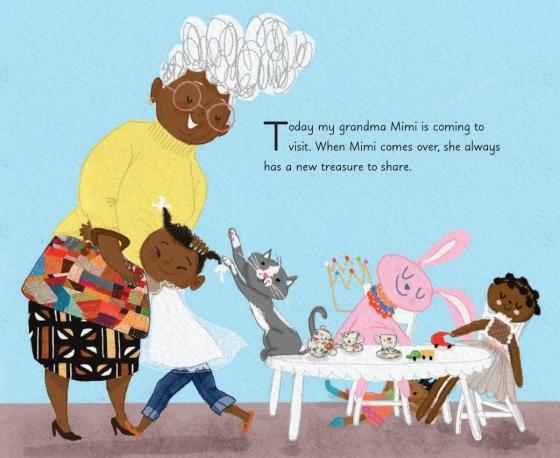 When Grandma Mimi comes to visit, she always brings warm hugs, sweet treats...and her purse. You never know what she'll have in there--fancy jewelry, tokens from around the world, or something special just for her granddaughter. It might look like a normal bag from the outside, but Mimi and her granddaughter know that it's pure magic!