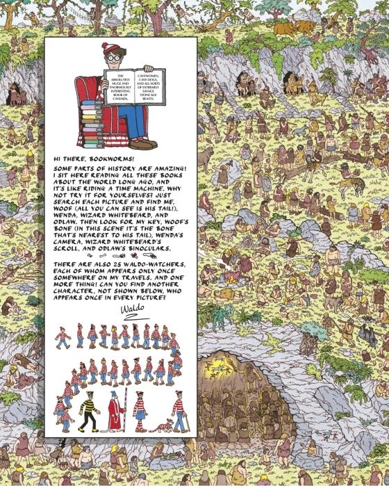 Where’s Waldo? Enjoying a refreshed cover plus two new pages of games and searches!Waldo and his friends Wenda, Woof, Wizard Whitebeard, and Odlaw are cropping up in scenes throughout history, appearing alongside cavemen, gladiators, gold miners, and more. Waldo even gets lost in the future!