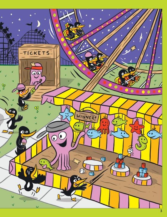 Kids (and grown-ups, too) will need to keep their eyes peeled to find more than 1,500 objects in 80+ hilarious scenes like sloths playing ping pong, dogs enjoying a fiesta, and a fishy carnival.