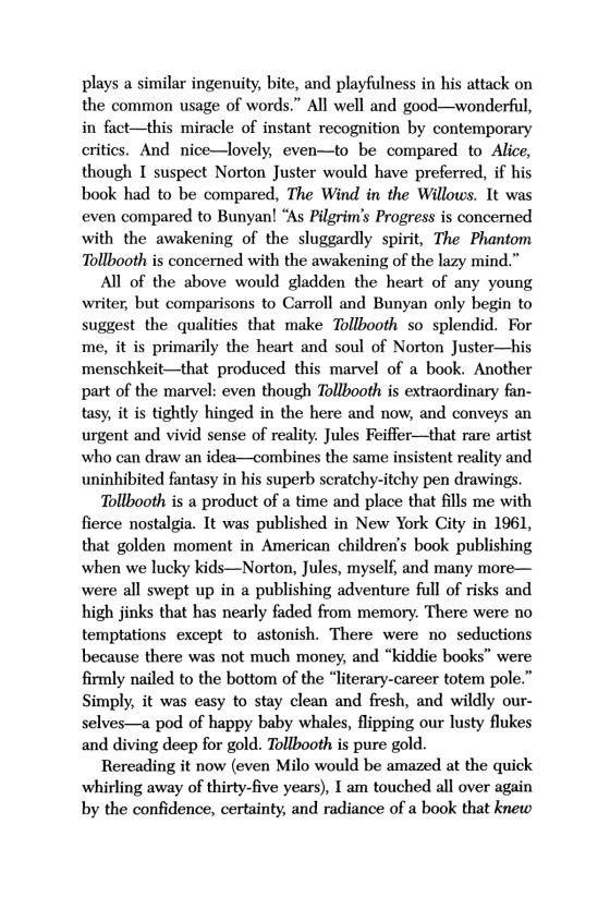 The Phantom Tollbooth first when I was 10. I still have the book report I wrote, which began 'This is the best book ever.'"-Anna Quindlen,