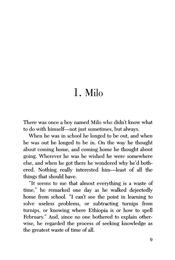 For Milo, everything’s a bore. When a tollbooth mysteriously appears in his room, he drives through only because he’s got nothing better to do. But on the other side, things seem different. Milo visits the Island of Conclusions (you get there by jumping), learns about time from a ticking watchdog named Tock, and even embarks on a quest to rescue Rhyme and Reason. Somewhere along the way, Milo realizes something astonishing. Life is far from dull. In fact, it’s exciting beyond his wildest dreams!