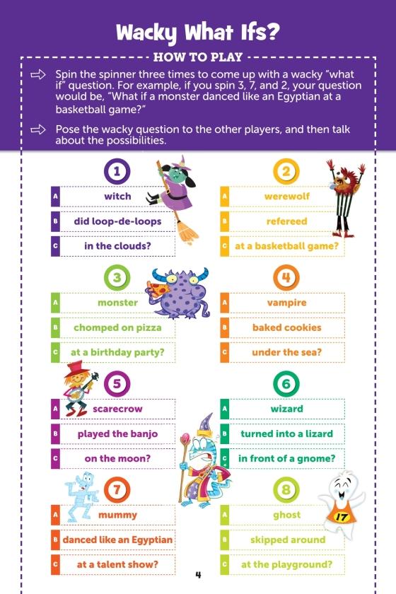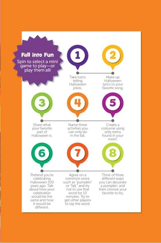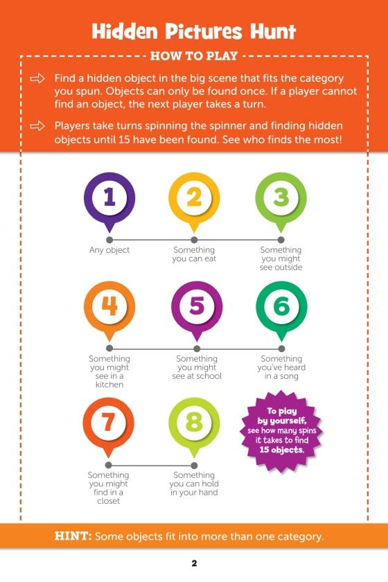 Take this spooky activity book for a spin! With a built-in spinner and over 20 Halloween-themed games, this travel-sized book has everything kids 6-9 need for hours of entertainment.Surrounded by adorable Halloween illustrations, the attached spinner cleverly folds out to work with every game. The games in this 32-page book include activities for one and for multiple players, including Hidden Pictures puzzles, fill-in story challenges, silly brainteaser games and more. Each activity is expertly created by the childhood experts at Highlights to help kids develop their concentration, attention to detail and other important school skills. Plus, playing games is a great way for children to build social emotional skills.