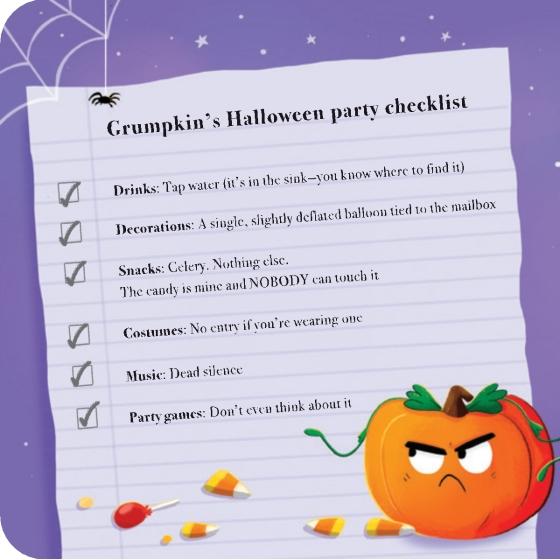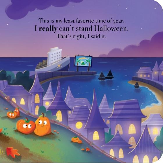 STARRED REVIEW Toddler-K–He’s grumpy. He’s brutally honest. He has bigger dreams! And Grumpkin “really can’t stand Halloween.” This bitter pumpkin has had enough of the costumes and trick-or-treating, and he can’t help but think of much better places to be. When the desire to have a new life turns to a reality, Grumpkin has to come to terms with how his life as a pumpkin has changed in paradise. Despite his disdain for all things Halloween, Grumpkin is an adorable bright orange pumpkin whose first-person point-of-view and litany of questions like “Why couldn’t I have been a summer squash instead?” and “What’s so great about getting picked?” make him relatable and endearing. The deliberate use of questions and exclamations, such as “Hello, paradise!” and “these trees don’t grow candy corn!” shows readers and emerging writers how word choice and punctuation can impact a story. There are a lot of language choices here that would make this book a great option to use as a text model. For example, words that are in bold font build Grumpkin’s hyperbolically negative tone: “No one ever lets me forget it,” or “literally all they care about is being picked.” The variety of illustration sizes, from highlight illustrations to spreads, offers all the more depth and engagement. VERDICT A winner. This title could easily become a new classic.--