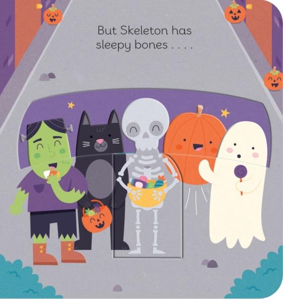 Follow along as the Halloween friends head off to bed after a night of trick-or-treating in this clever, interactive board book with die-cut pages and lift-the-flaps.It's Halloween night, and it's time for an evening full of trick-or-treating and fun! A group of spooky friends has gone around to collect candy on this fun night, but now they're tired and ready to go to bed! Young readers can follow along as Skeleton, Ghost, Pumpkin, and more adorable characters head home and jump in bed one by one. This fun book features sturdy flaps for little hands, and a clever transformation with each turn of the page!