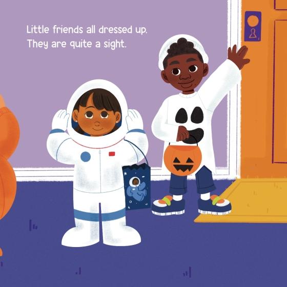 It’s Halloween, and little friends are all dressed up! Follow along as they go from house to house, having fun and saying "Trick-or-treat!" in this second installment of the Brown Baby Parade series.It’s Halloween!Time to go—off into the night.Little friends all dressed up.They are quite a sight.A group of friends in costumes have a blast trick-or-treating from house to house. Each friend is dressed up, so you'll see a ballerina, an astronaut, a pumpkin, and even a president!
