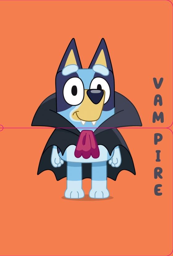 A Halloween mix-and-match board book perfect for fans of the successful animated series Bluey, as seen on Disney+Turn a vampire into a ghost, a witch into a monster, and more! Have fun mixing and matching different costumes with Bluey, Bingo, and all their friends. This board book is perfect for