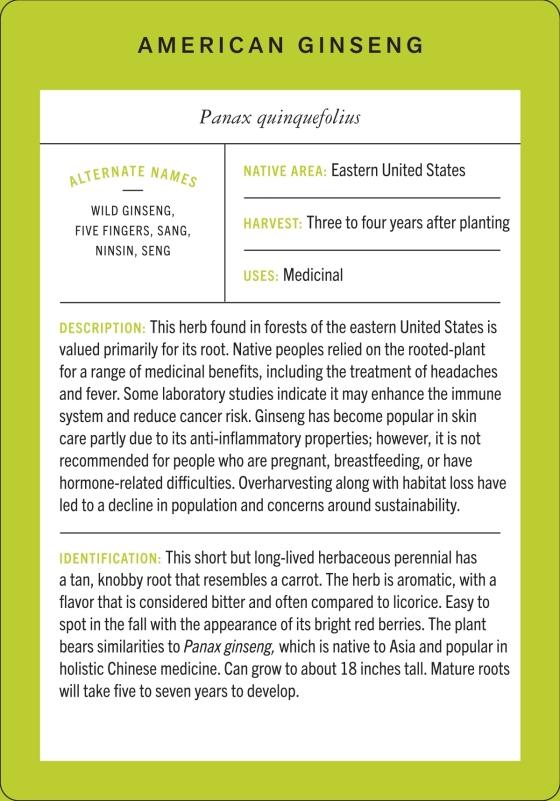 a detailed illustration of an herb that can be foraged or cultivated in North Americathe herb’s popular and Latin name, as well as the other names it might be known byinformation on habitat, season, and uses