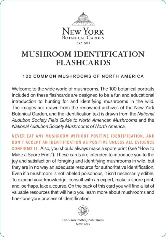 This deck is not a resource for identifying mushrooms to eat.Take these cards on a country walk or camping trip as you spot mushrooms in the wild—or enjoy learning with the colorful images from the New York Botanical Garden archives from the comfort of home.