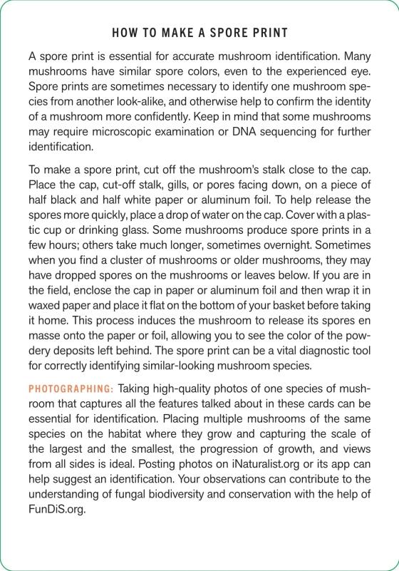 • information on size, color, spore print, season, habitat, and range drawn from